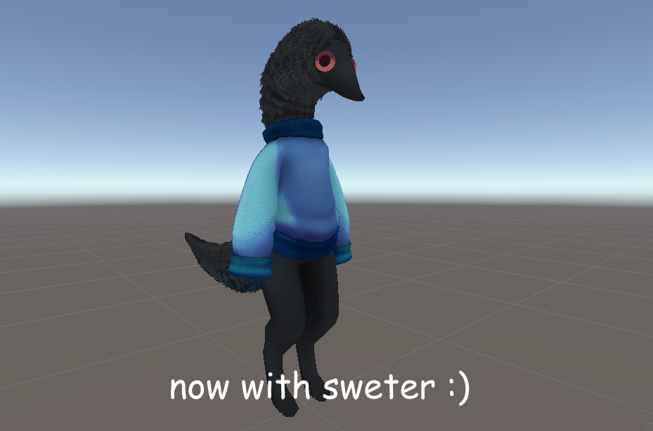 Due to this, I made a Quest friendly fallback version with the same features as the base model (minus rgb gamer eyes) that doubles as a fallback with the sweater removed.